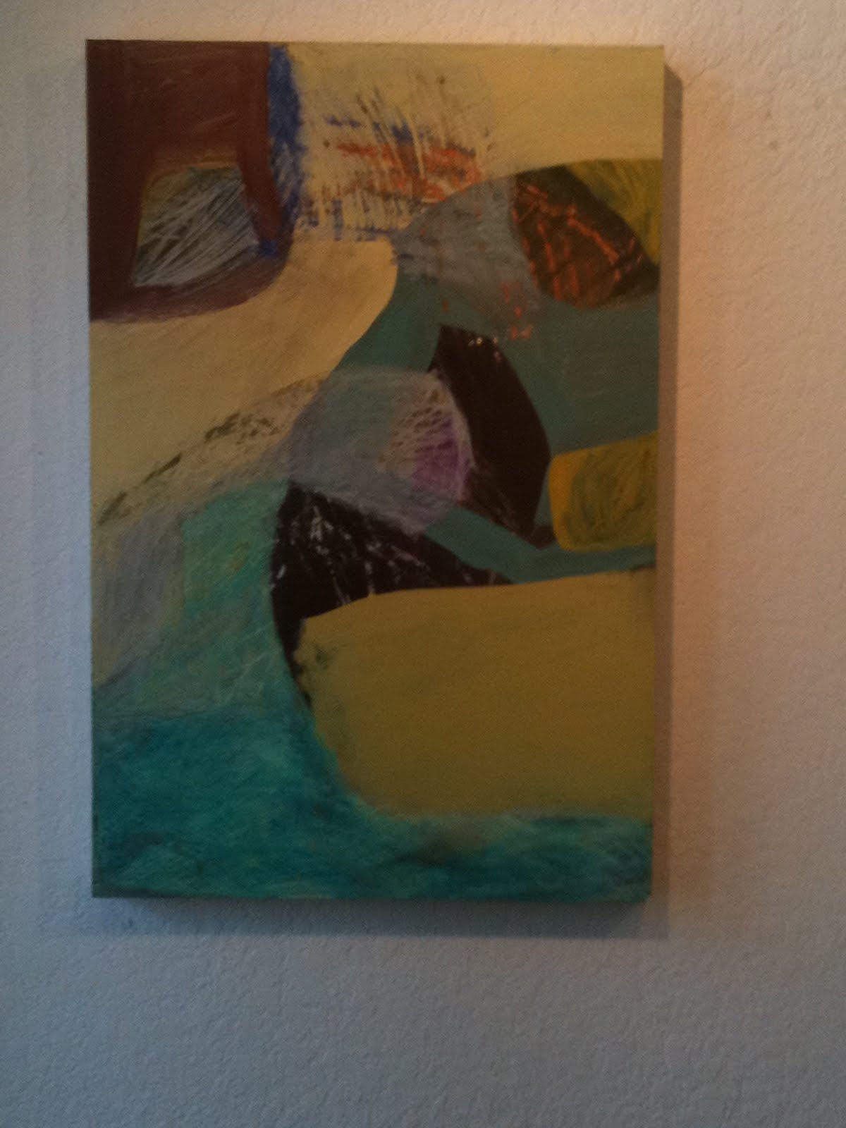 This post has been doomed from the start. I wanted to show how the painting looks now after I adjusted it this morning but the light didn't cooperate. Now I've freaked out blogspot. Anyway, here it is. Now it looks like a ship at sea and no, that's not what I'm going to call it. I must stop futzing around and print up my labels. See you at Art Walk.